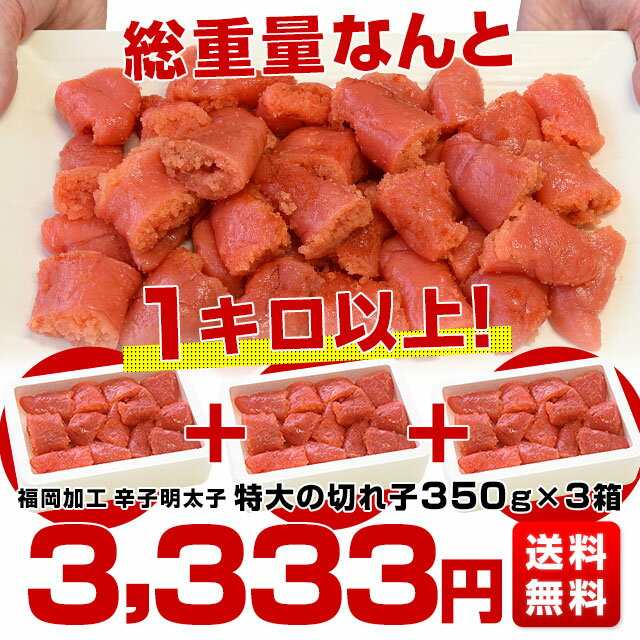 福岡県より直送 福岡加工 辛子明太子 特大の切れ子 3箱セット 総重量1キロ以上(350g×3箱)送料無料 めんたいこ ※クール冷凍便